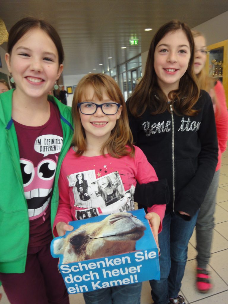 Die Spendenbereitschaft der Schülerinnen und Schüler in den letzten zwei Wochen haben die Eltern am Elternsprechtag fortgeführt: So schafften wir zusammen 765 Euro, die nun der Caritas übergeben werden. Unsere beiden Kamele werden in Kenia das Leben der Nomadenfamilien erleichtern, die aufgrund der Klimaerwärmung immer öfter mit Dürre zu kämpfen haben. Unser Esel entlastet schwer arbeitende Frauen in Äthiopien beim Tragen von Feuerholz und Wasser. Ein herzliches Dankeschön an alle, die zum Gelingen der Aktion beigetragen haben! Einige SchülerInnen sprachen schon von einer Idee für nächstes Jahr: ob wir einen ganzen Hühnerstall voll Hühner kaufen könnten? Mal sehen!