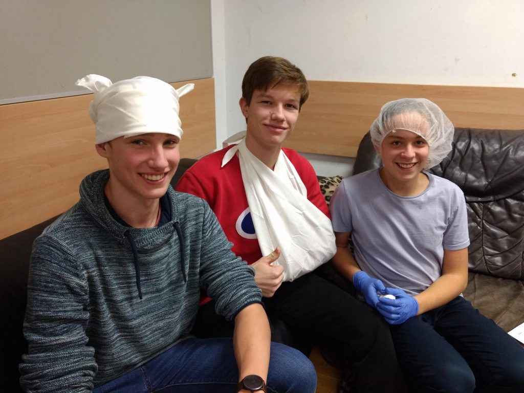 23 SchülerInnen der 7AB haben großes Engagement gezeigt und am 7. Dezember 2019 ihren ersten Erste-Hilfe-Kurs am b[r]g Enns erfolgreich absolviert. Neben den verschiedenen Erste-Hilfe-Maßnahmen bei Blutungen, Schlaganfall, Herzinfarkt und Epilepsie wurde auch die Wiederbelebung durch die Herzdruckmassage erlernt und mit großem Einsatz und Motivation geübt.
