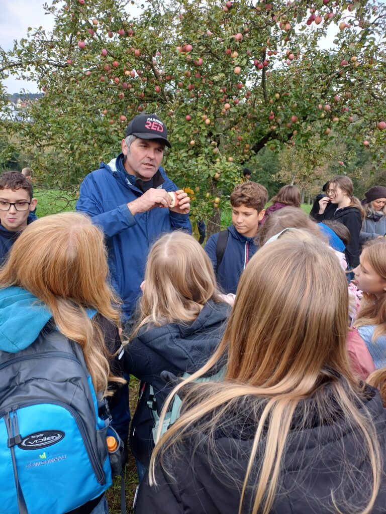 Alle 3. Klassen des b[r]g Enns nahmen am 02.10.25 bei kühlem Wetter an einer Obsternteaktion in der Gartenbaufachschule Ritzlhof teil. Bei dieser Aktion wurden vor Ort den Schüler*innen durch Herrn Richard Mahringer (Obstbau- und Permakulturexperte) die Bedeutung der Vielfalt der verschiedenen Sorten und deren Erhalt, sowie auch die ökologischen Aspekte von regionalen/lokalen Nahrungsmitteln und Streuobstwiesen vermittelt. Dabei durften unterschiedliche Apfelsorten verkostet werden.