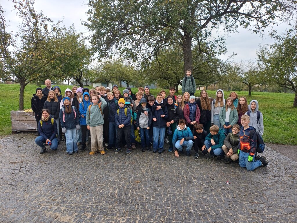 Anschließend ging es mit viel Elan an das Ernten der reifen Apfelsorten. Dabei wurde auch ein kleiner Igel entdeckt, der für die Überwinterung noch angefüttert werden muss. Zur besseren Versorgung durfte er zu einer Schülerin der 3A mit nach Hause, wo er für den Winter versorgt wird.