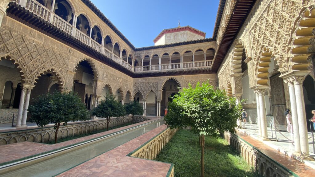 Jeden Tag hatten wir ein abwechslungsreiches Programm und so verging die Zeit wie im Flug. Neben einem Besuch der spanischen Schule standen diverse Ausflüge auf dem Plan: In Sevilla erkundeten wir bei sommerlichen 38 Grad die wunderschöne Plaza de España, den beeindruckenden Real Alcázar, die Kathedrale mit der Giralda und die Torre del Oro. Außerdem unternahmen wir einen Tagesausflug nach Cádiz ans Meer sowie nach Córdoba, wo wir die berühmte Mezquita besichtigten und durch die mit Blumen geschmückten Gassen schlenderten.