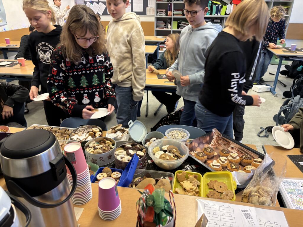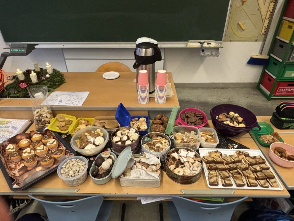 Das liebevoll zusammengestellte Keksbuffet stand sogar den ganzen Unterrichtstag über in der Klasse und bereitete nicht nur der 1A Freude. Auch die Klassenlehrkräfte ließen sich die Gelegenheit nicht entgehen und griffen gerne zu. Zudem wurden die Adventkalender-Wichtel verraten.