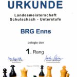 Nach sieben gespielten Runden stand der Sieger fest: Das Team des b[r]g Enns erzielte hervorragende 27,5 aus 28 möglichen Punkten und sicherte sich somit souverän den Landesmeistertitel. Den zweiten Platz belegte das BRG Auhof mit 19,5 Punkten, gefolgt vom Gymnasium Ried. Damit darf das b[r]g Enns Oberösterreich im Mai erneut beim Bundesfinale vertreten, das dieses Mal in Linz ausgetragen werden wird.